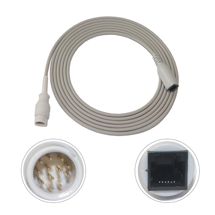 IBP interfeisa kabeļi ir izgatavoti no TPU materiāla un pilnībā ekranēti stabilai signāla pārraidei un prettraucējumu novēršanai. Spraudnis ir TPU, un tapas ir apzeltītas, lai nodrošinātu noturīgu savienojumu un vadītspēju. Vieglie adaptera kabeļi ir paredzēti, lai klients varētu integrēt pacienta uzraudzības sistēmas.