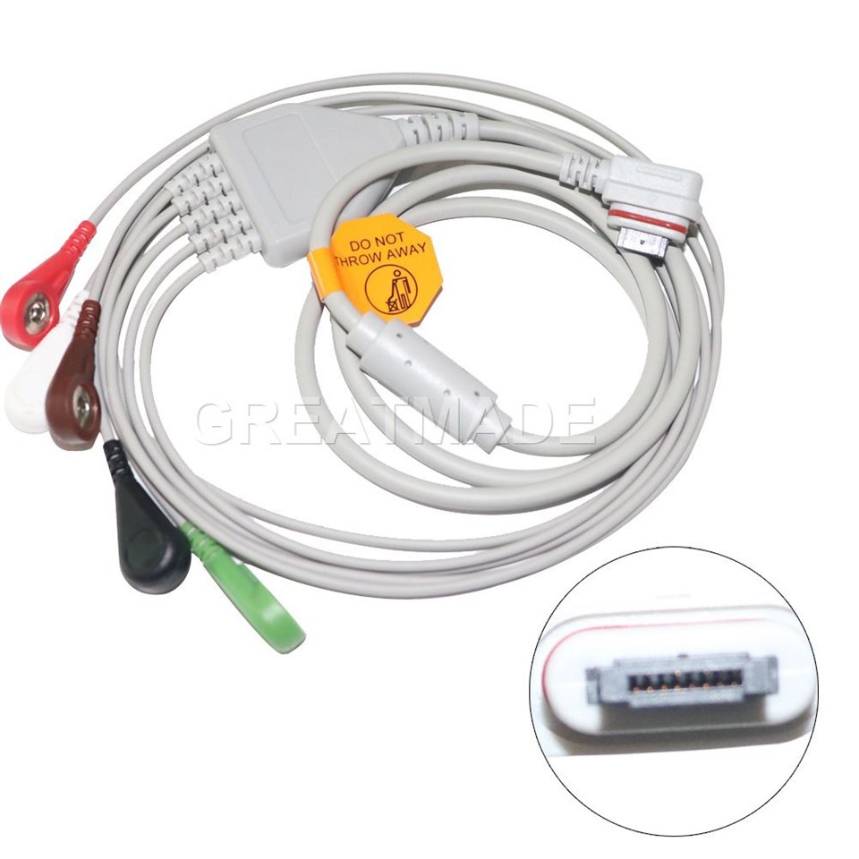 Saderīgsar: OEM NO . 2008594-003 5- svina Holter ECG kabeļa vadošie vadi GE Seer Light, 2 kanāls (5-LD), AHA, SNAP