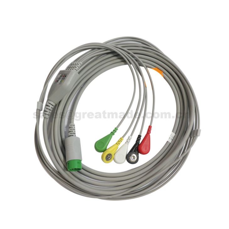 Viengabala 5-svina vairoga EKG kabelis, kas savietojams ar Mindray Beneview T5. T6. T8, PM5000, PM 6000, Snap, IEC, 12ft, apaļš 12PIN
