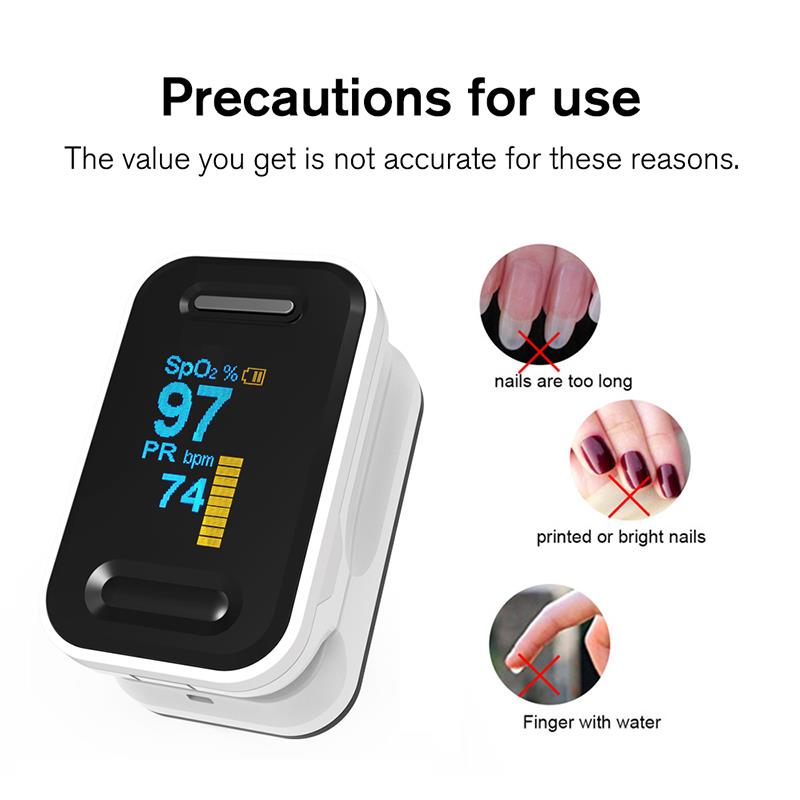 Pirkstu pulsa oksimetrs ir pieejams un precīzs veids, kā pārbaudīt pulsa ātrumu un skābekļa piesātinājuma līmeni asinīs. Tas parāda arī Plethysmograph vilni, kas garantē precizitāti. Pašregulējošs pirkstu skava un vienkārša vienas pogas konstrukcija ļauj to viegli izmantot. Komplektā ar somiņu un kakla / plaukstas auklu. Ērti medmāsai un ārstam karājas uz kakla. Mazs pārnēsājams izmērs padara to ērti lietojamu un nēsājamu. Piemērots ikdienas lietošanai, jebkurā laikā izmēriet savu veselību.