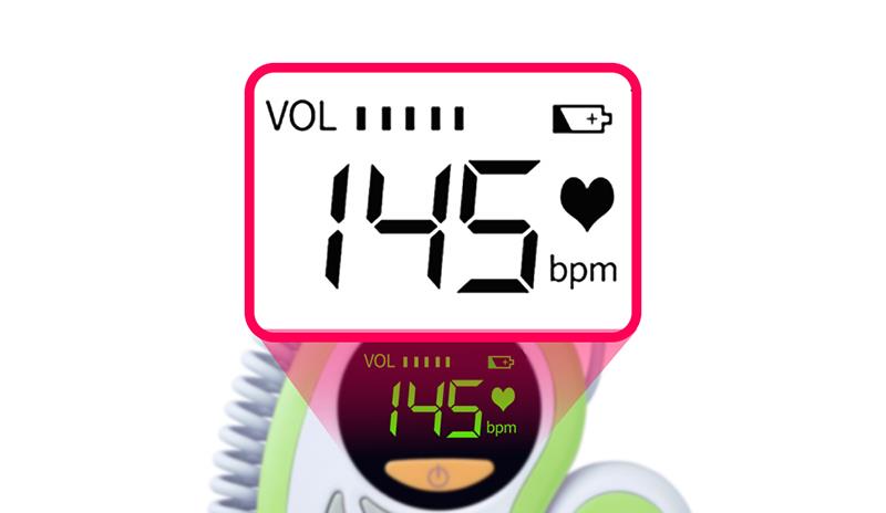LED apgaismojums ar displeju, intuitīvāka augļa sirdsdarbības izpratne, regulējams skaļums, mazuļa sirdsdarbības klausīšanās